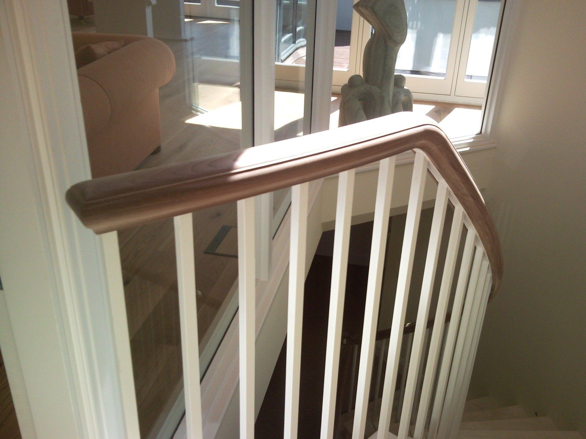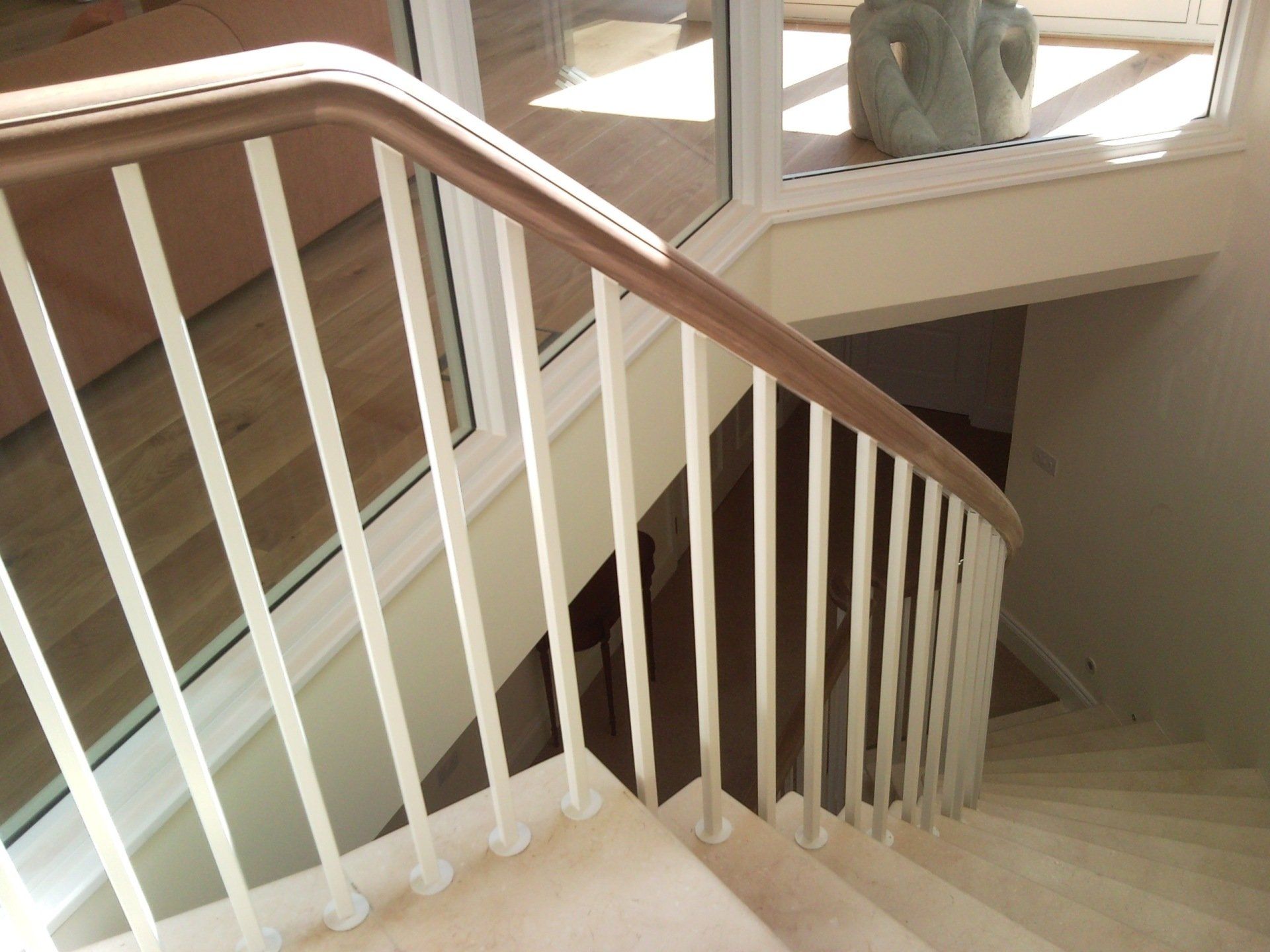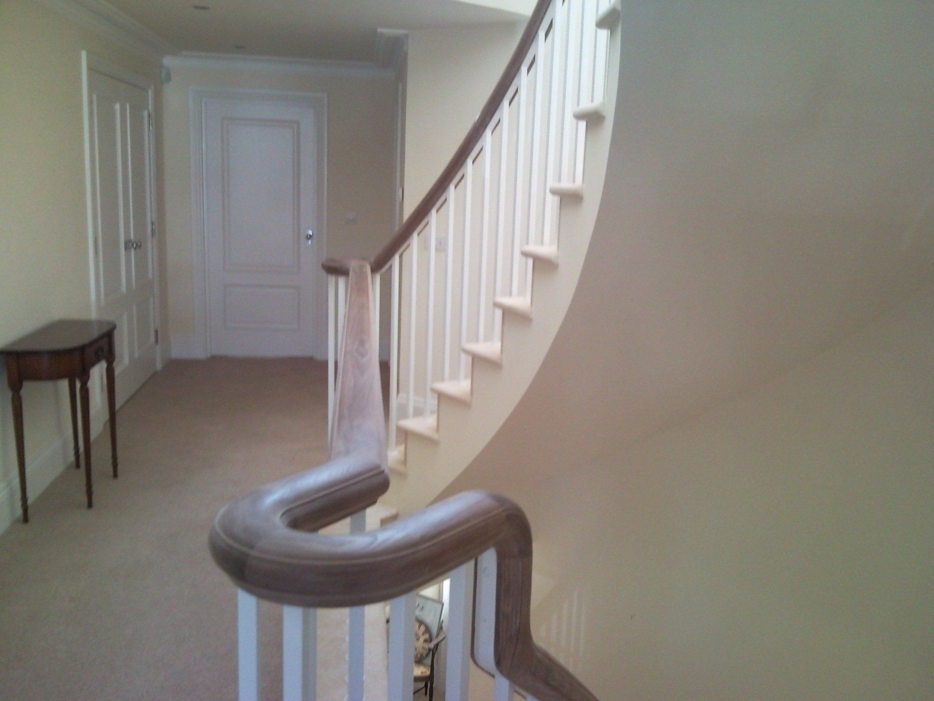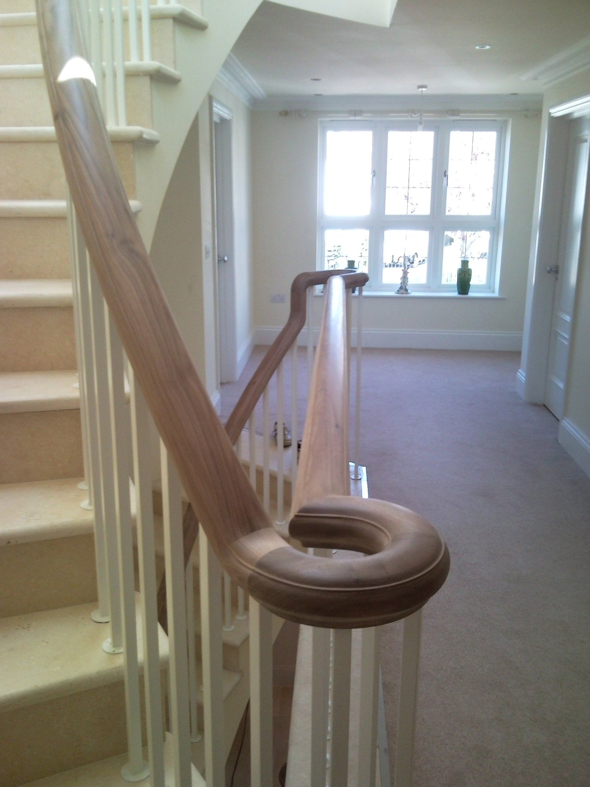 Featuring in the joinery completed for a residence in Sandbanks is this spray- finished Library Unit with hardwood doors and designed mouldings; also the wreathed handrail on the staircase crafted in black walnut finished with French polish. Sent out to site, installation-ready, were an oak Front Door, Garage Door & Gate.