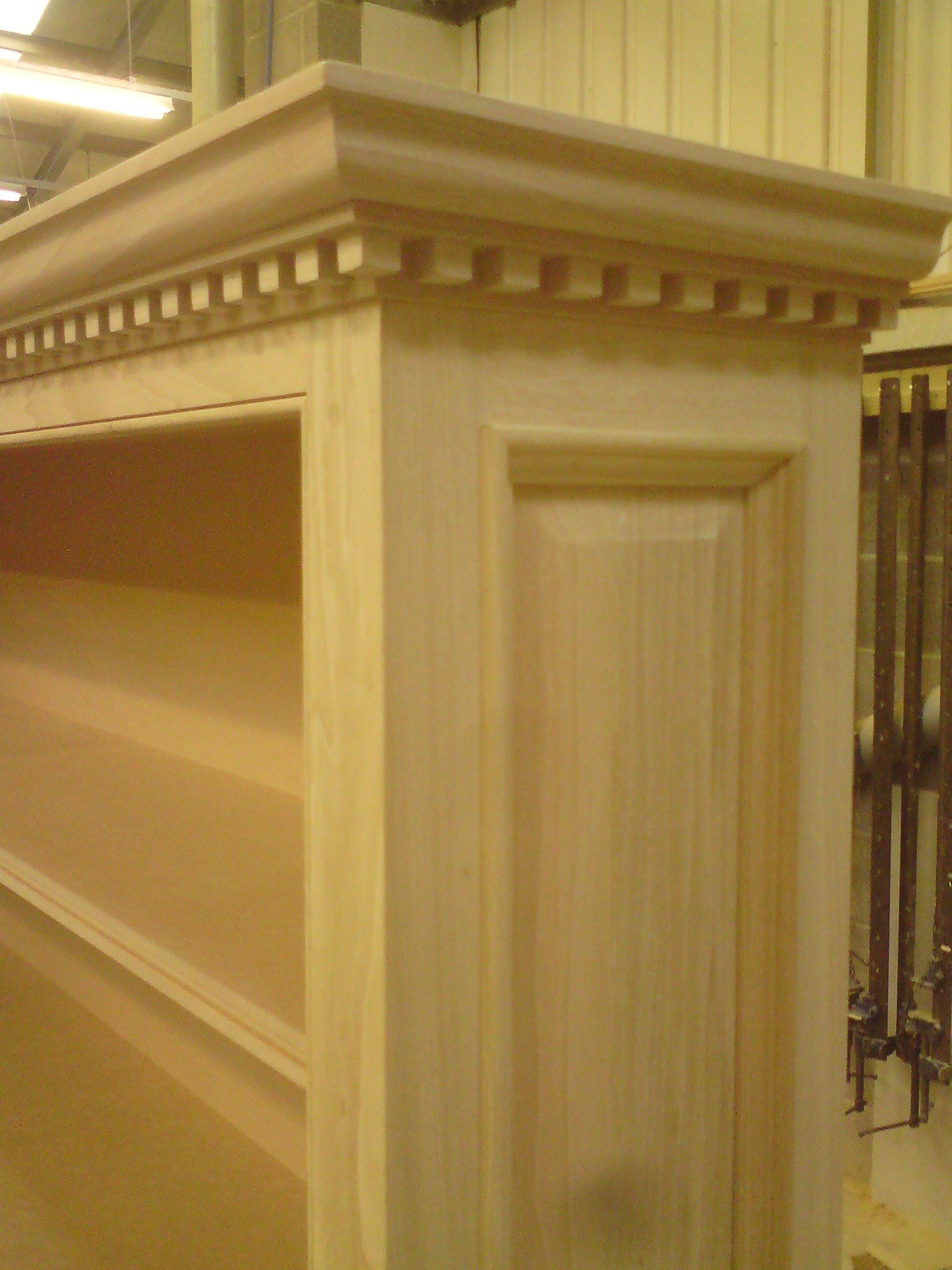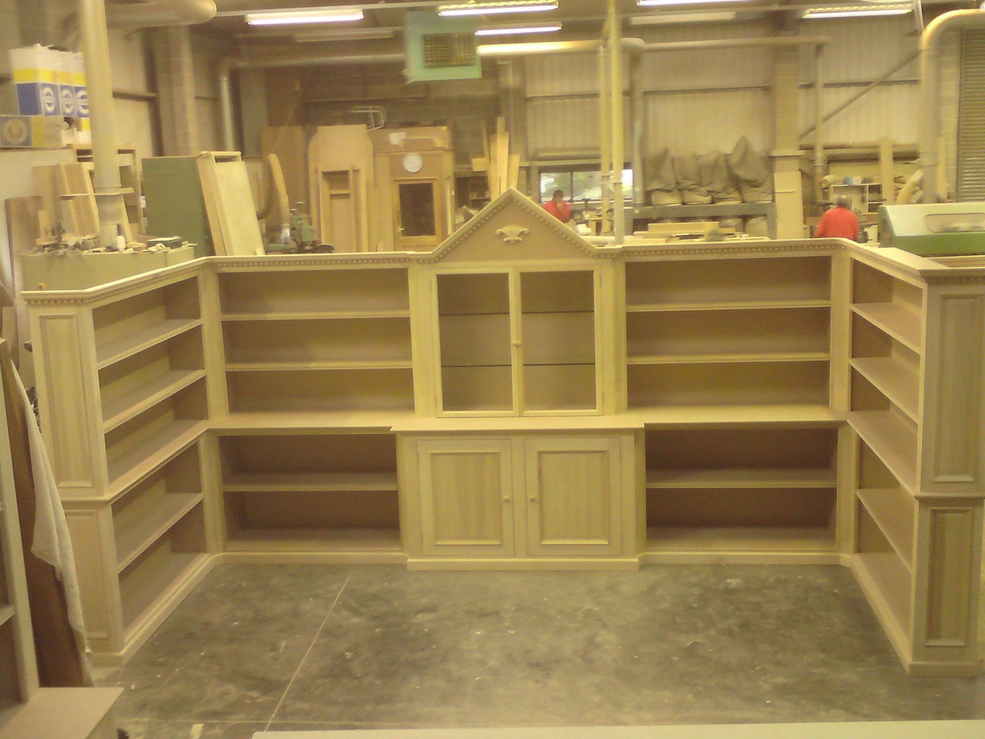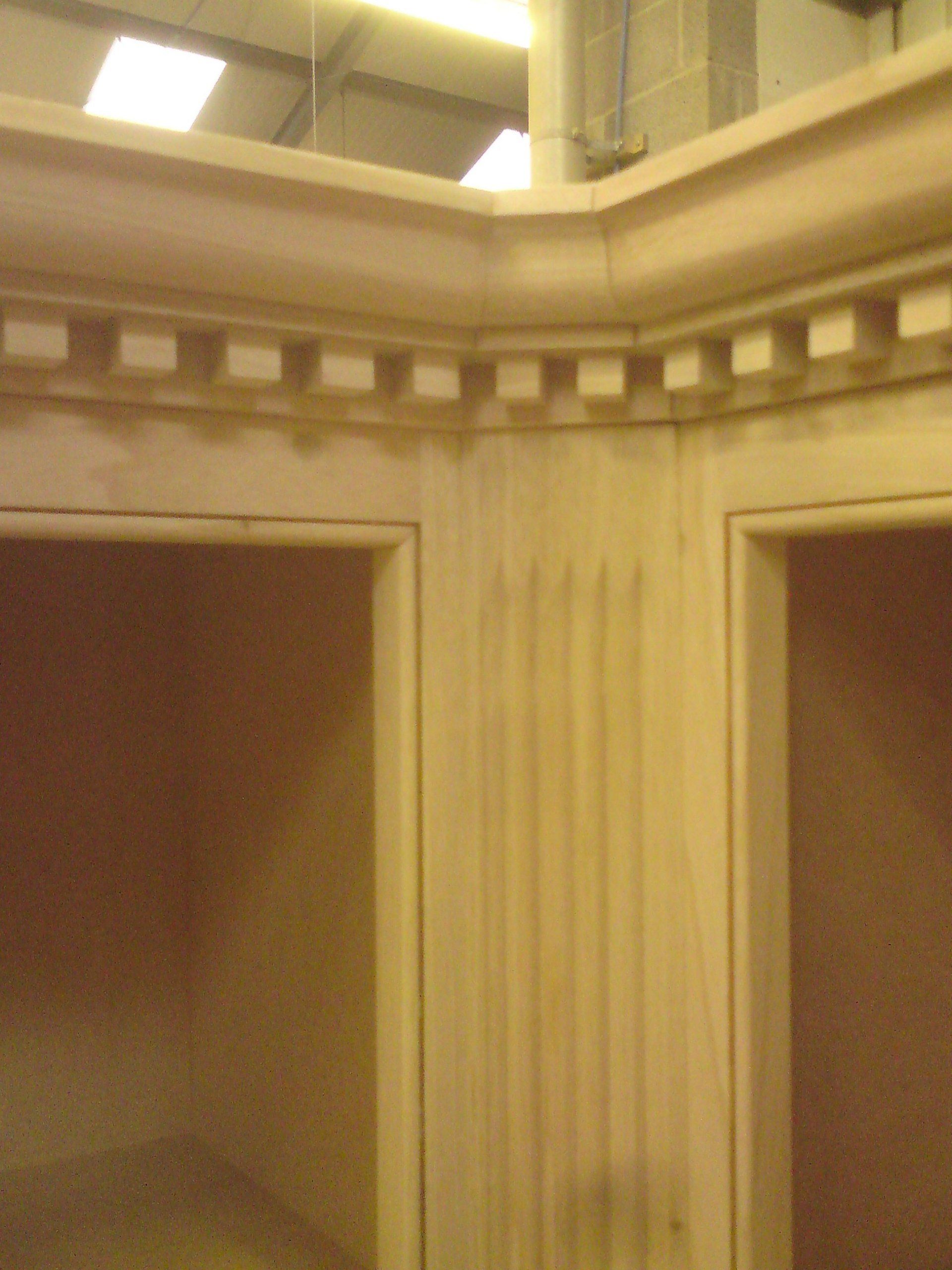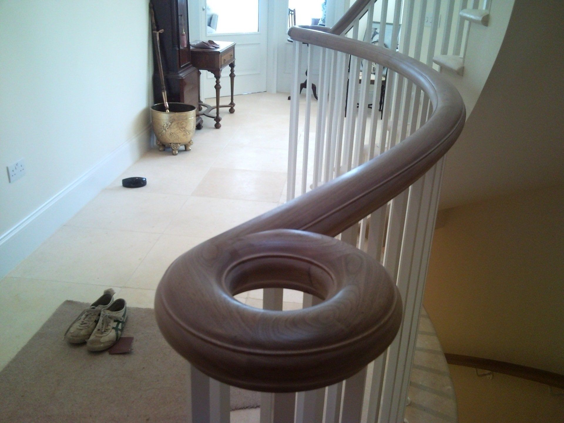 Featuring in the joinery completed for a residence in Sandbanks is this spray- finished Library Unit with hardwood doors and designed mouldings; also the wreathed handrail on the staircase crafted in black walnut finished with French polish. Sent out to site, installation-ready, were an oak Front Door, Garage Door & Gate.