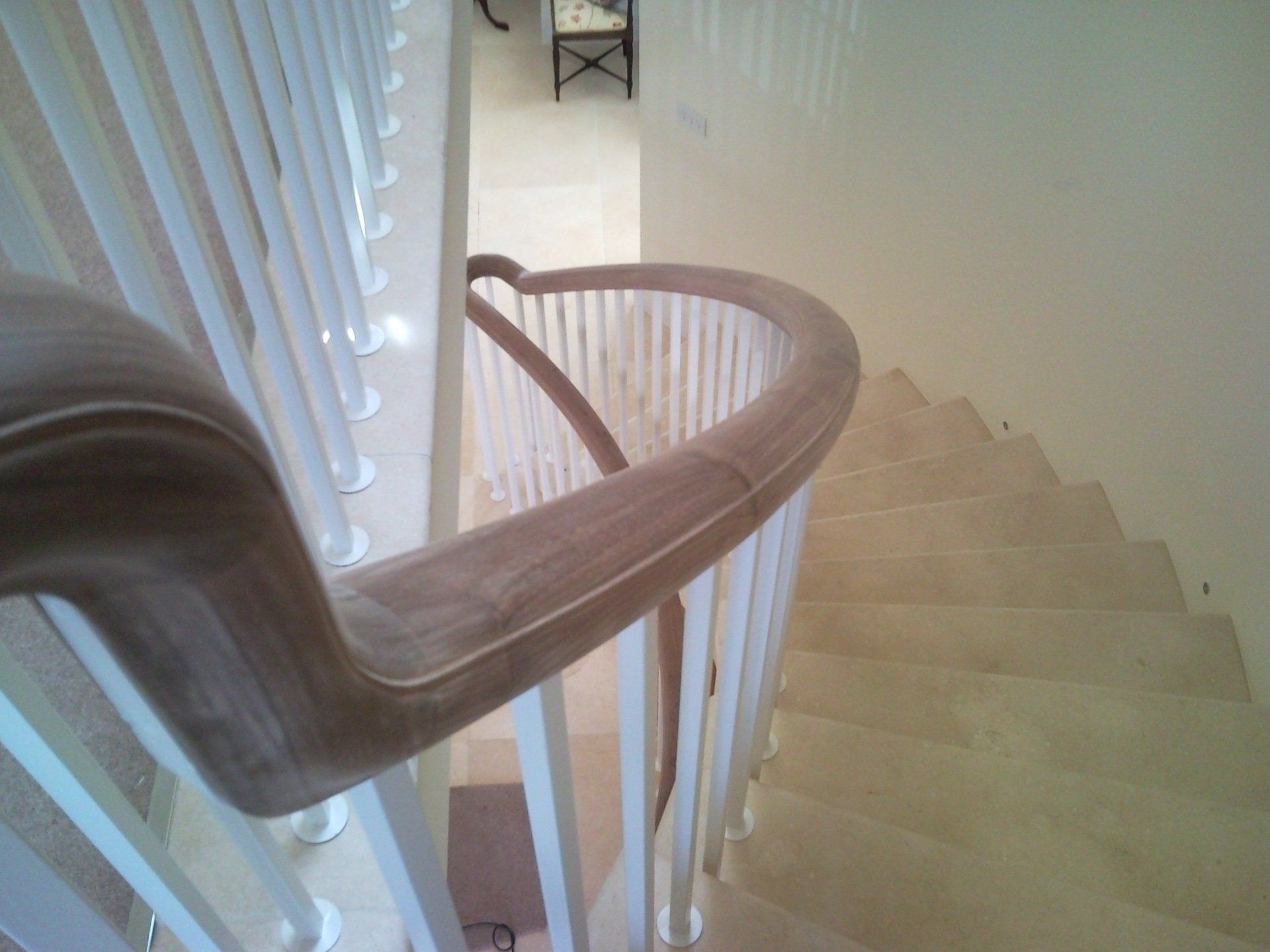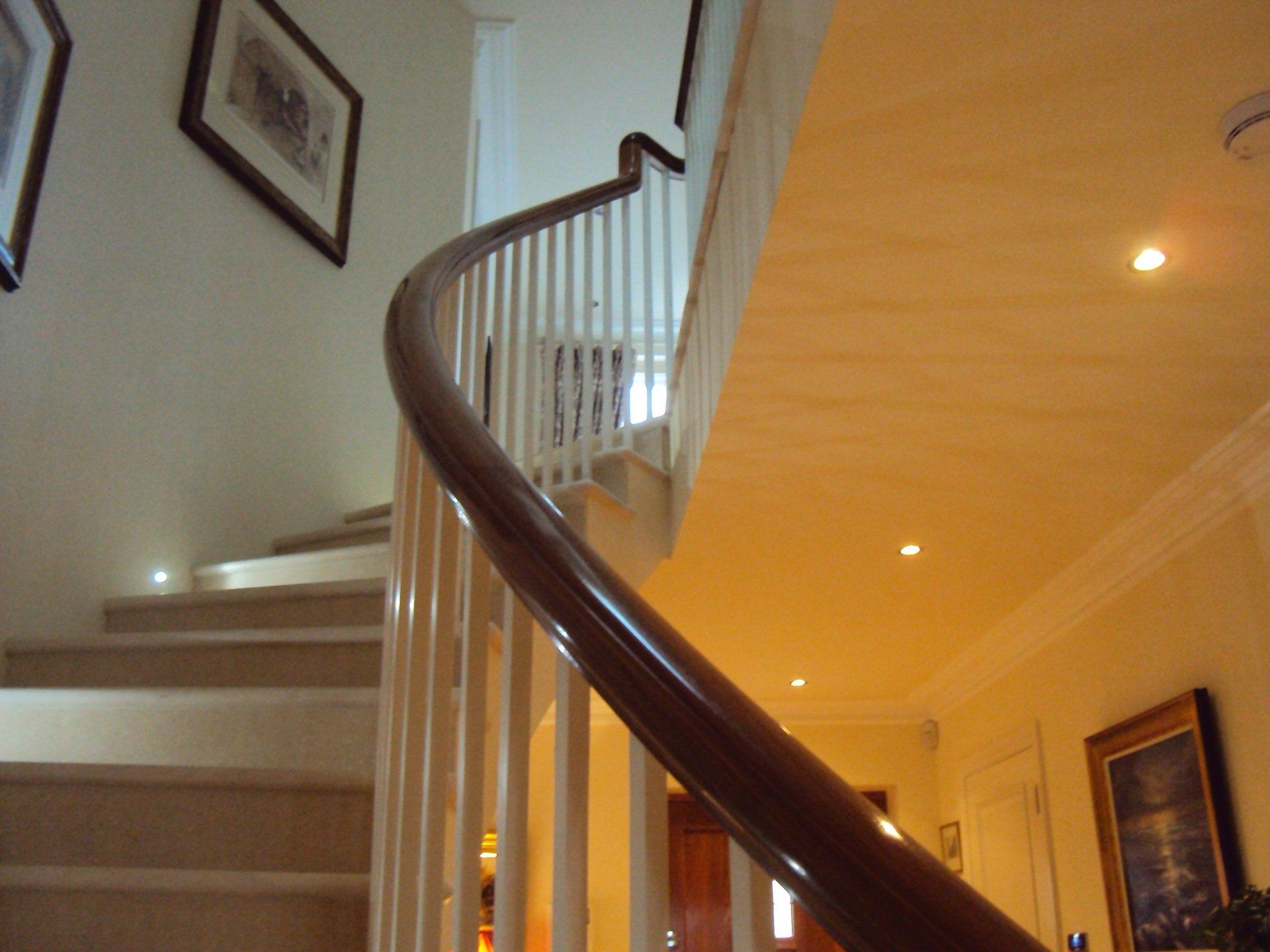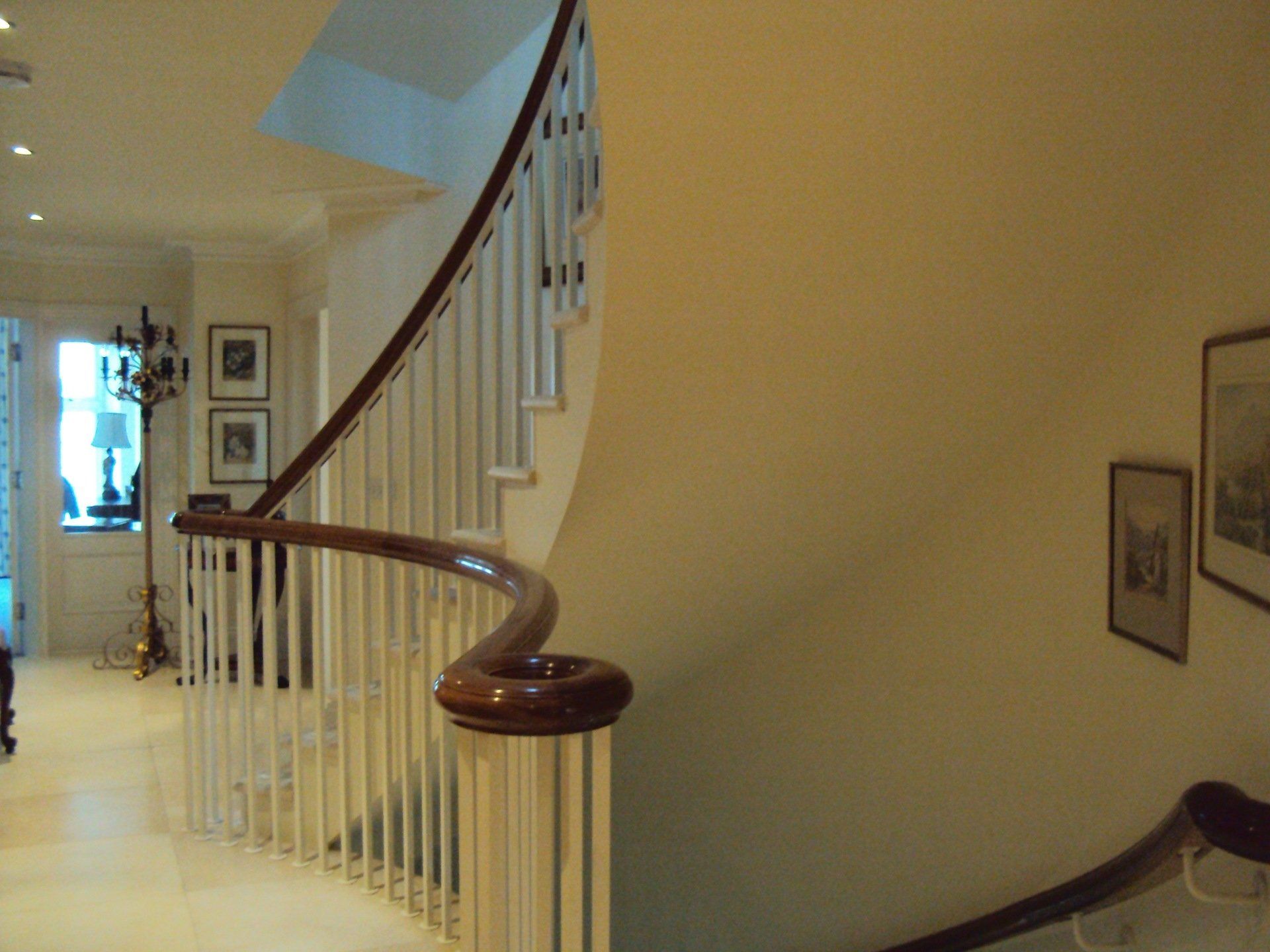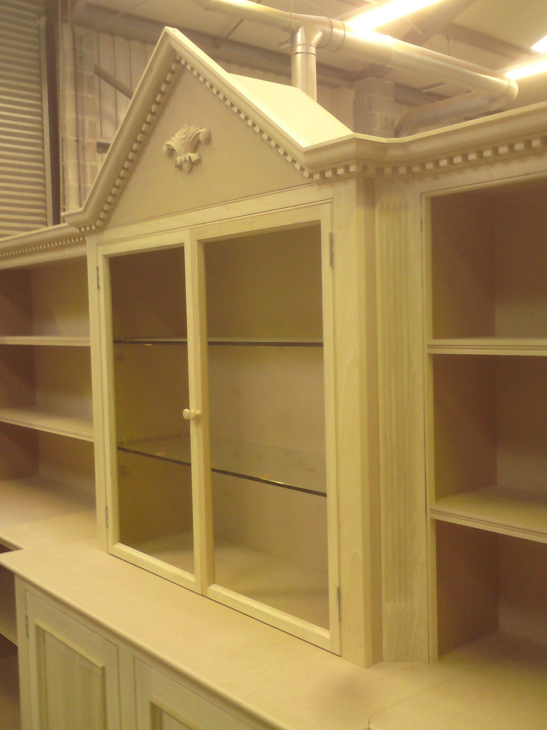 Featuring in the joinery completed for a residence in Sandbanks is this spray- finished Library Unit with hardwood doors and designed mouldings; also the wreathed handrail on the staircase crafted in black walnut finished with French polish. Sent out to site, installation-ready, were an oak Front Door, Garage Door & Gate.