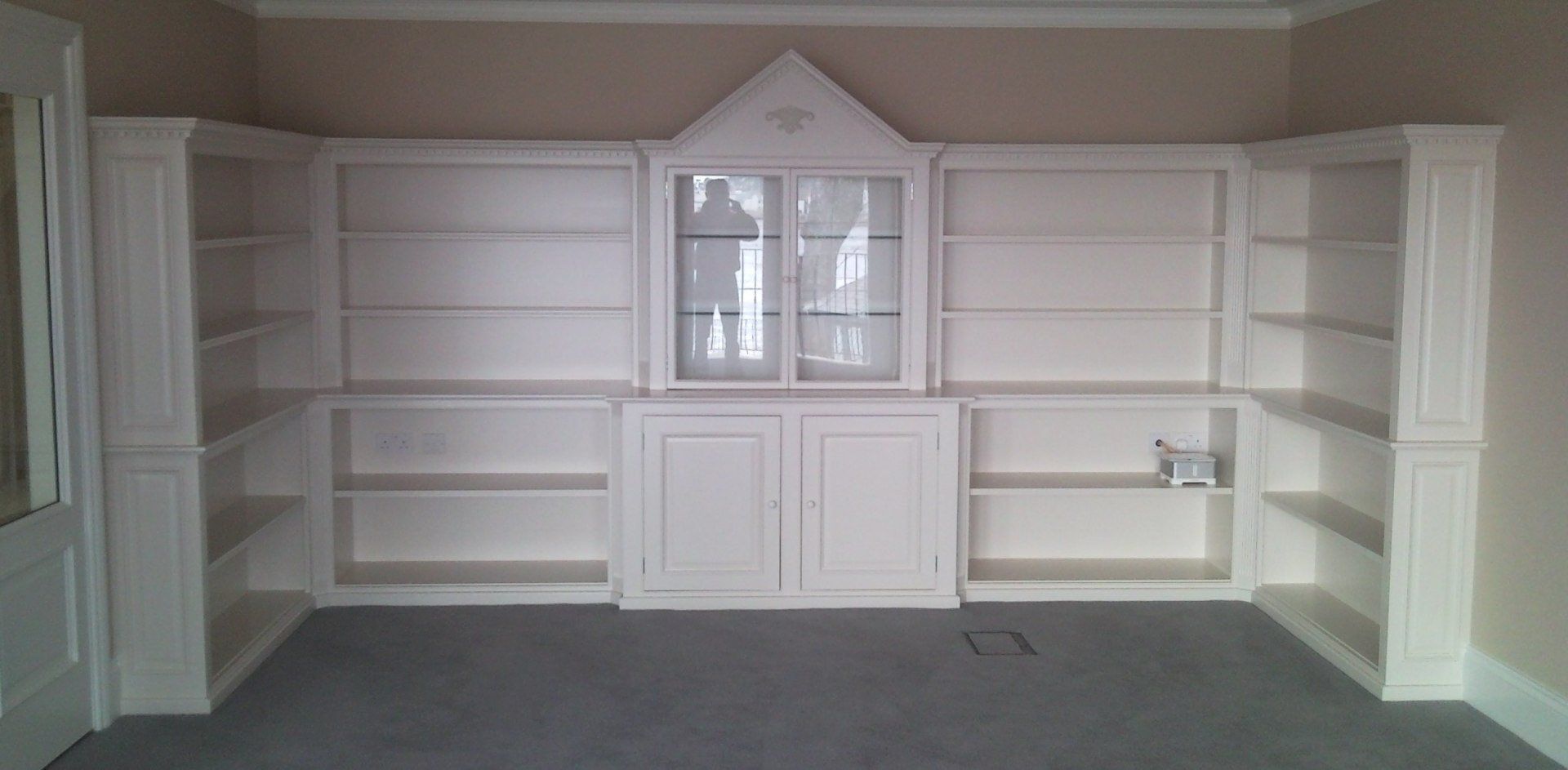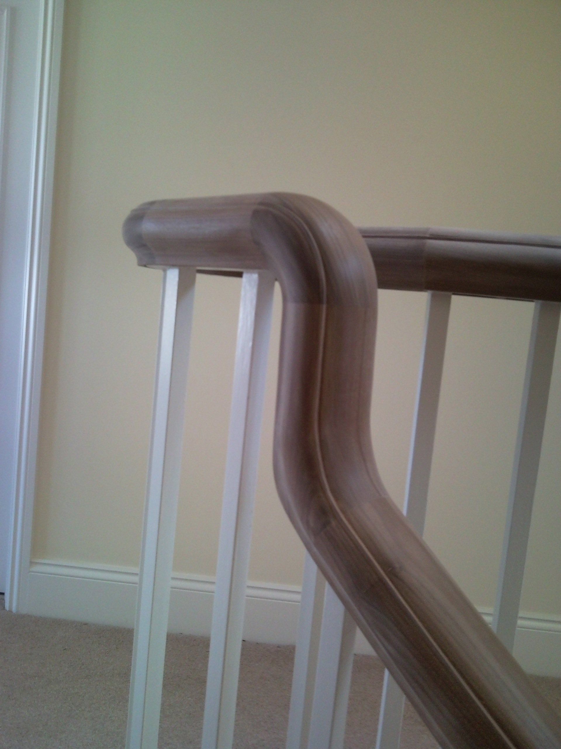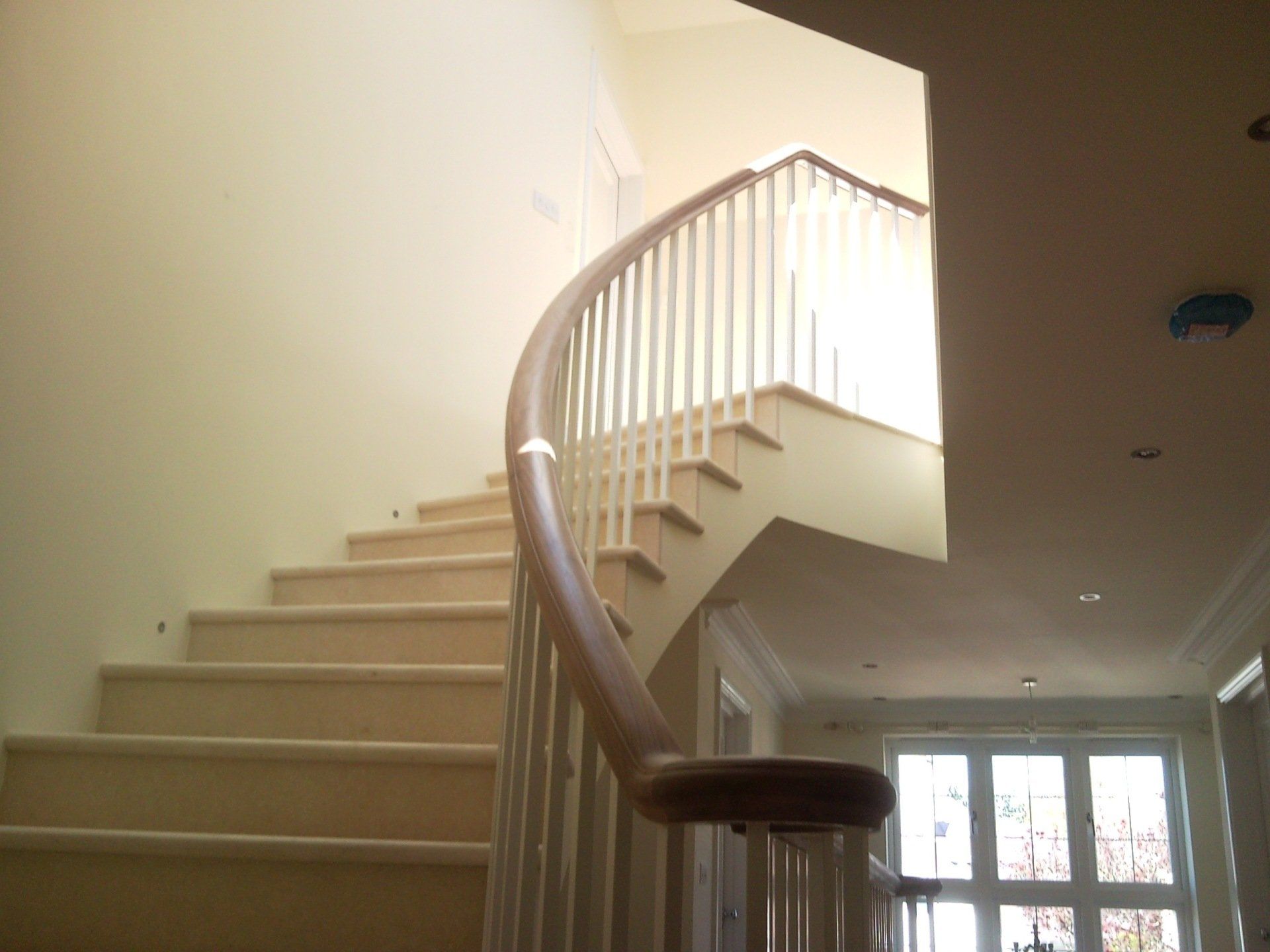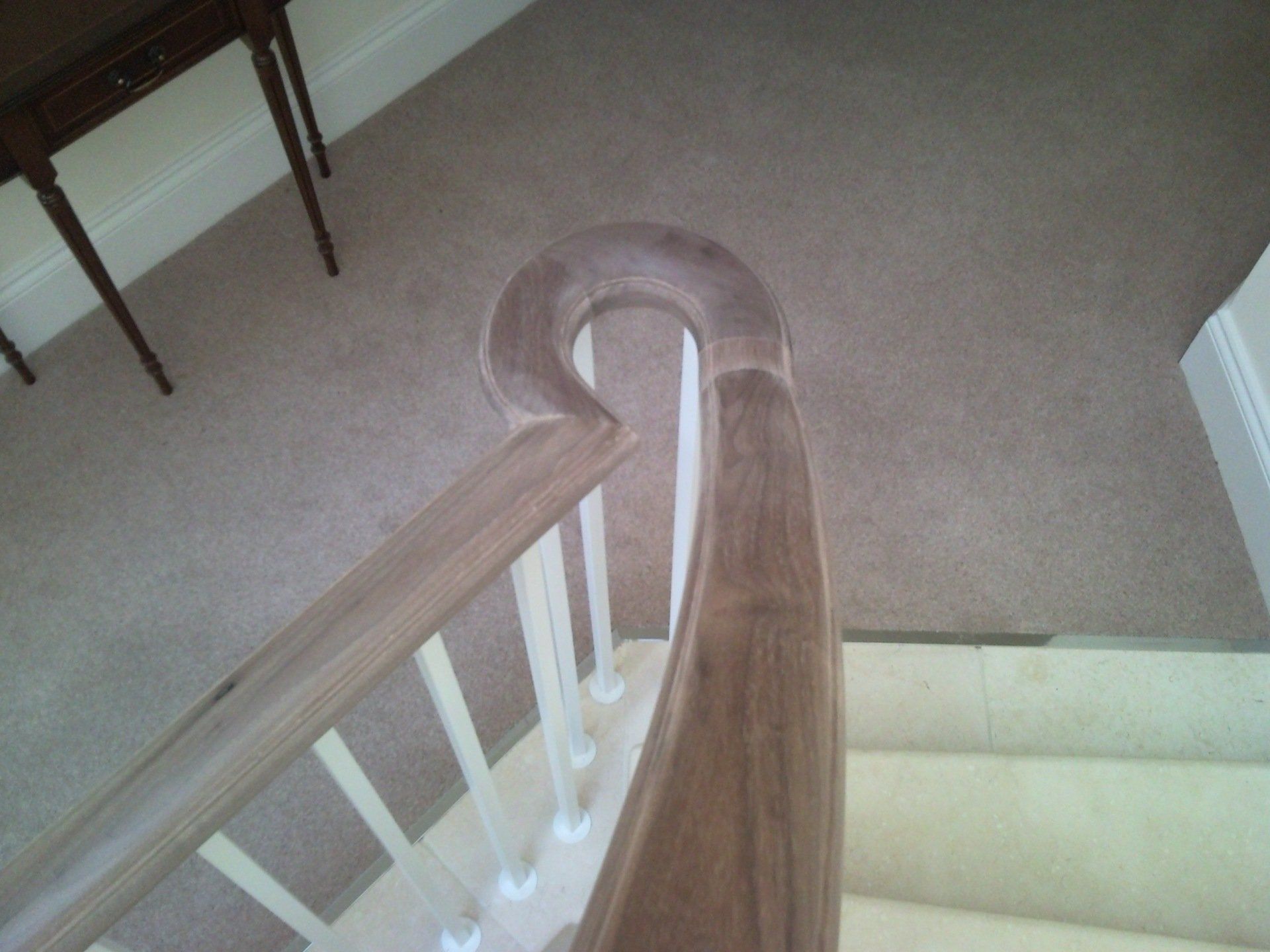 Featuring in the joinery completed for a residence in Sandbanks is this spray- finished Library Unit with hardwood doors and designed mouldings; also the wreathed handrail on the staircase crafted in black walnut finished with French polish. Sent out to site, installation-ready, were an oak Front Door, Garage Door & Gate.