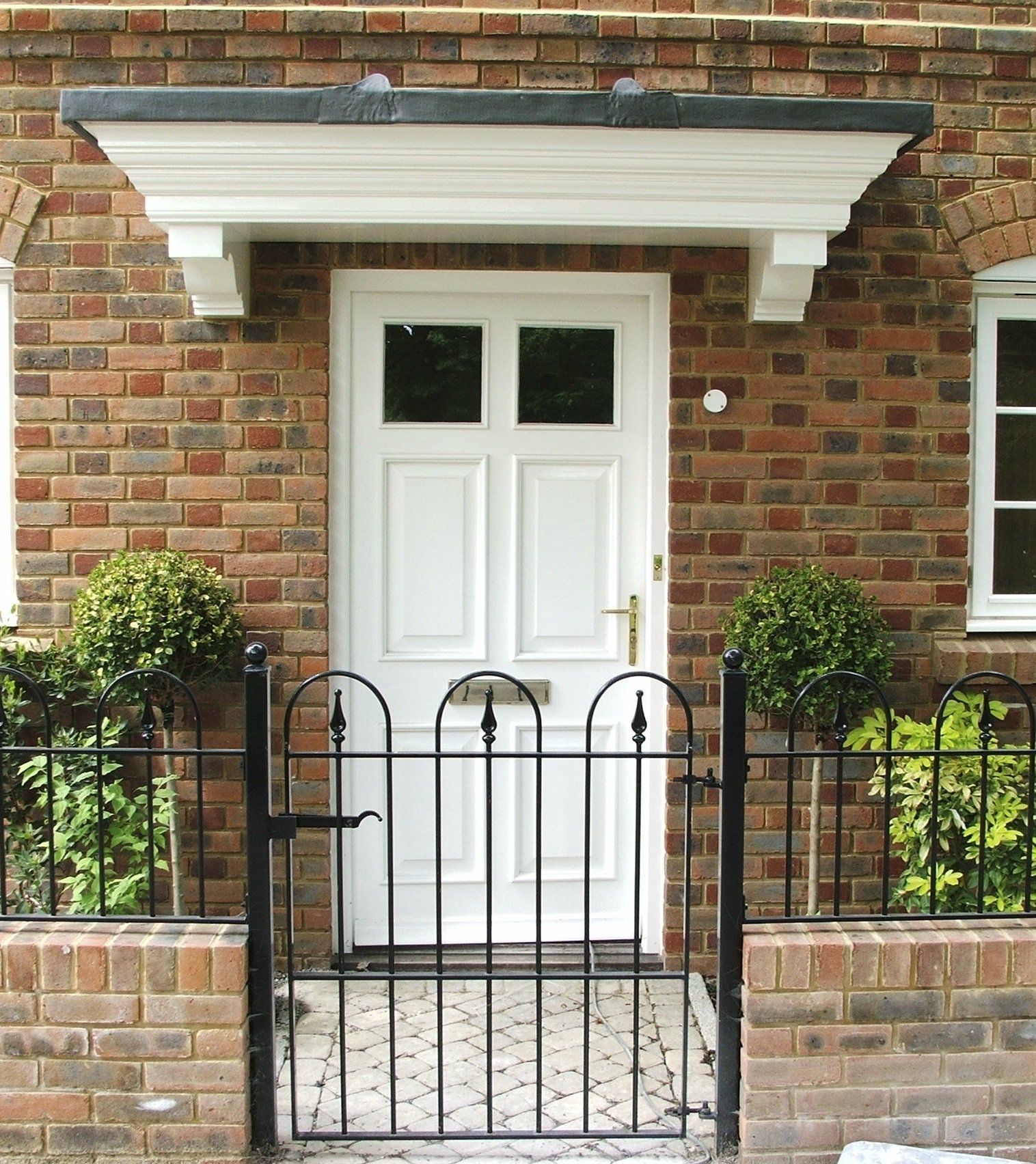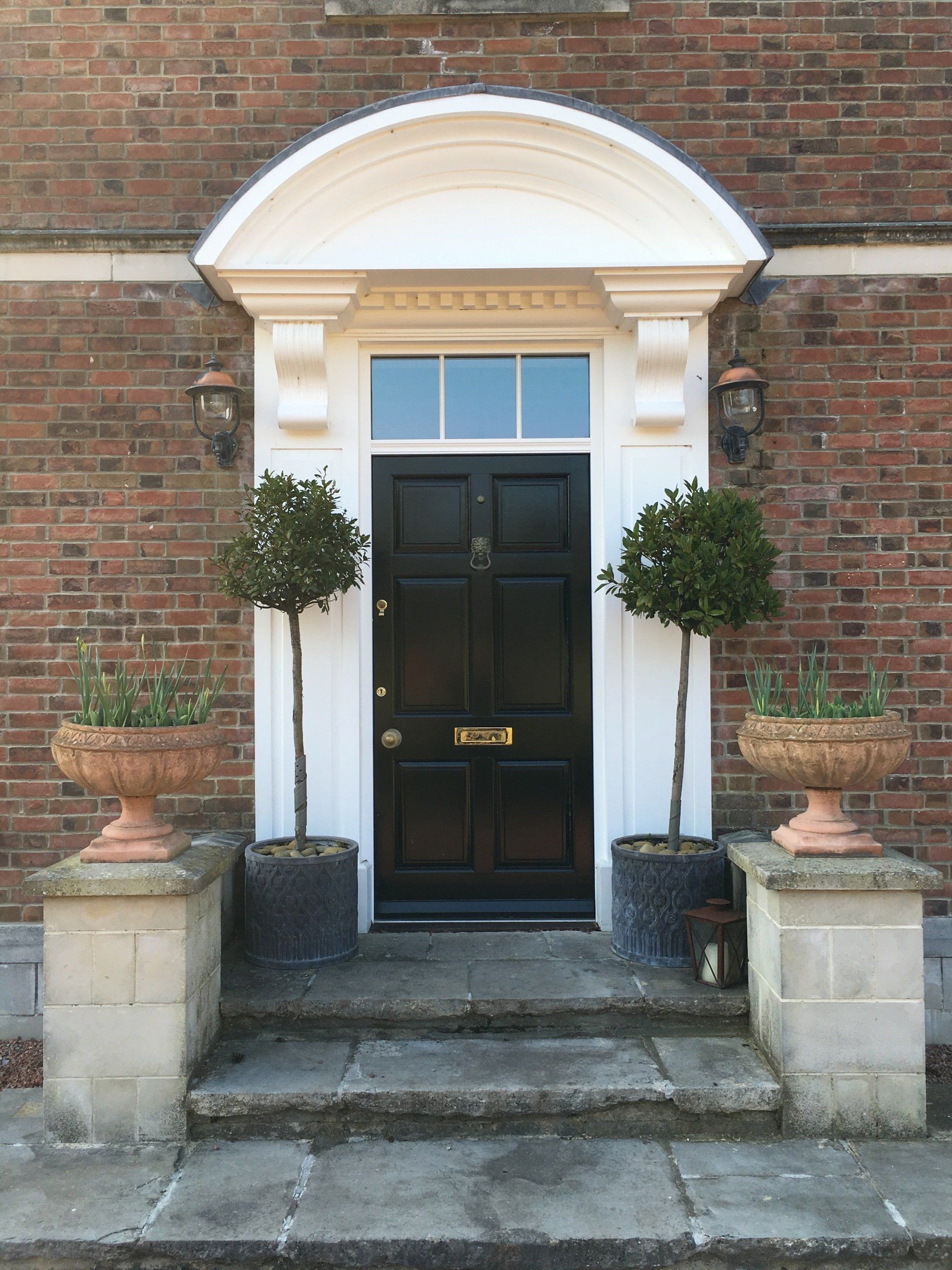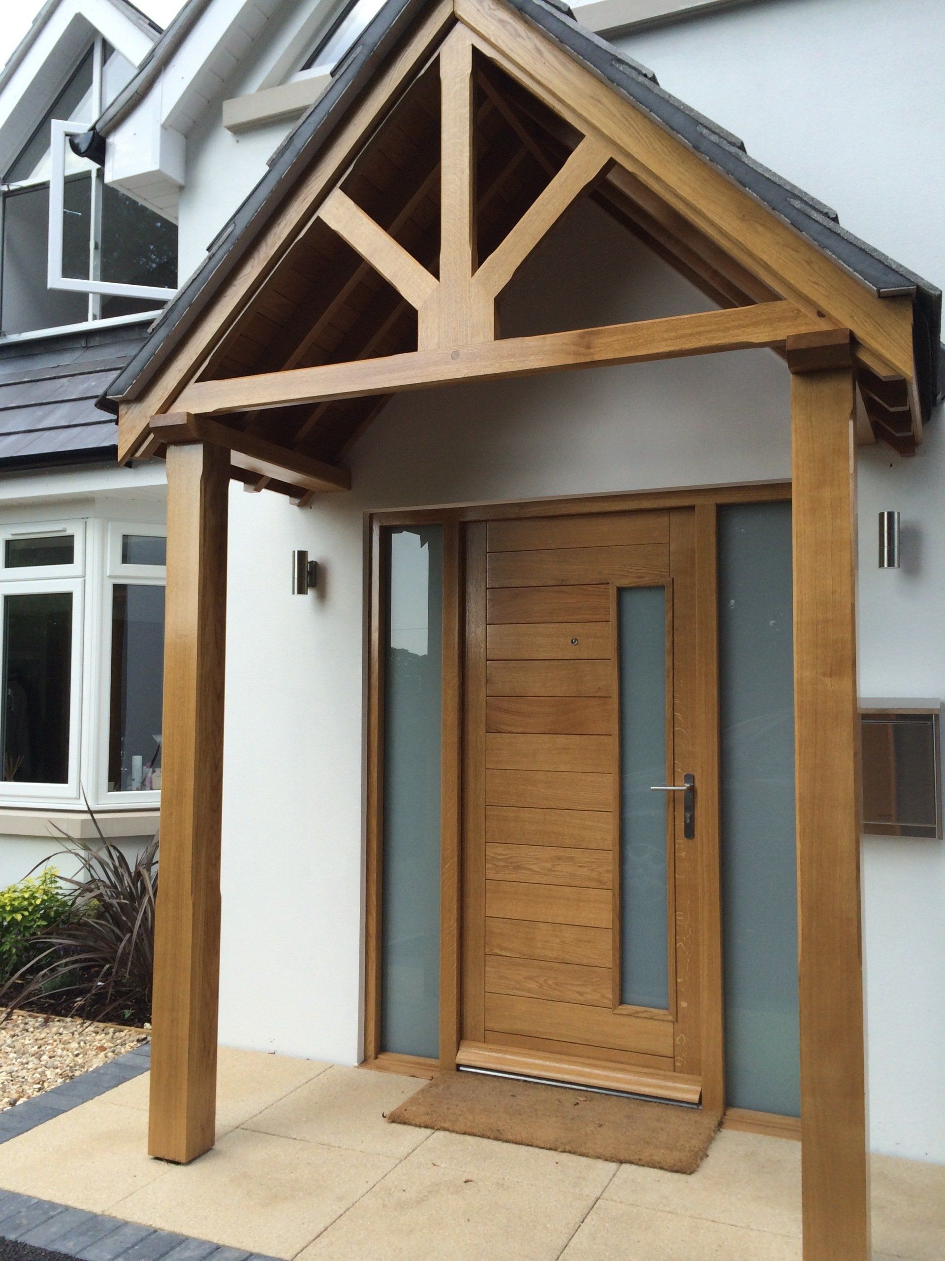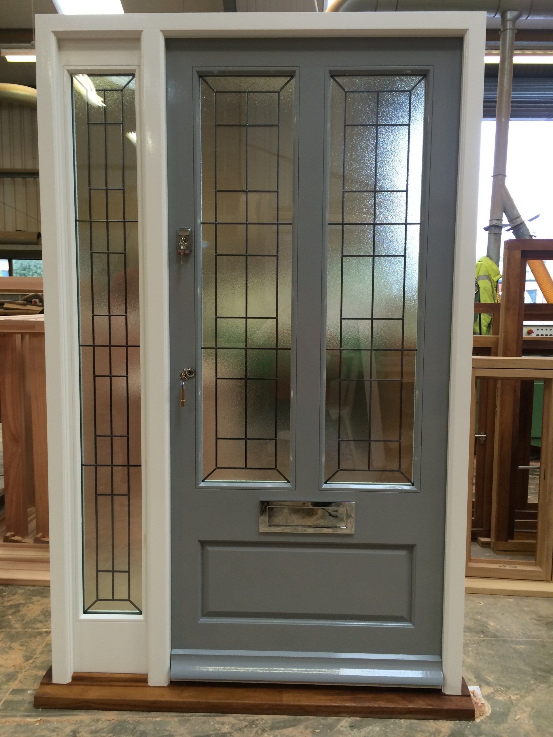 Hardwood painted front door and frame with double glazed sidelights