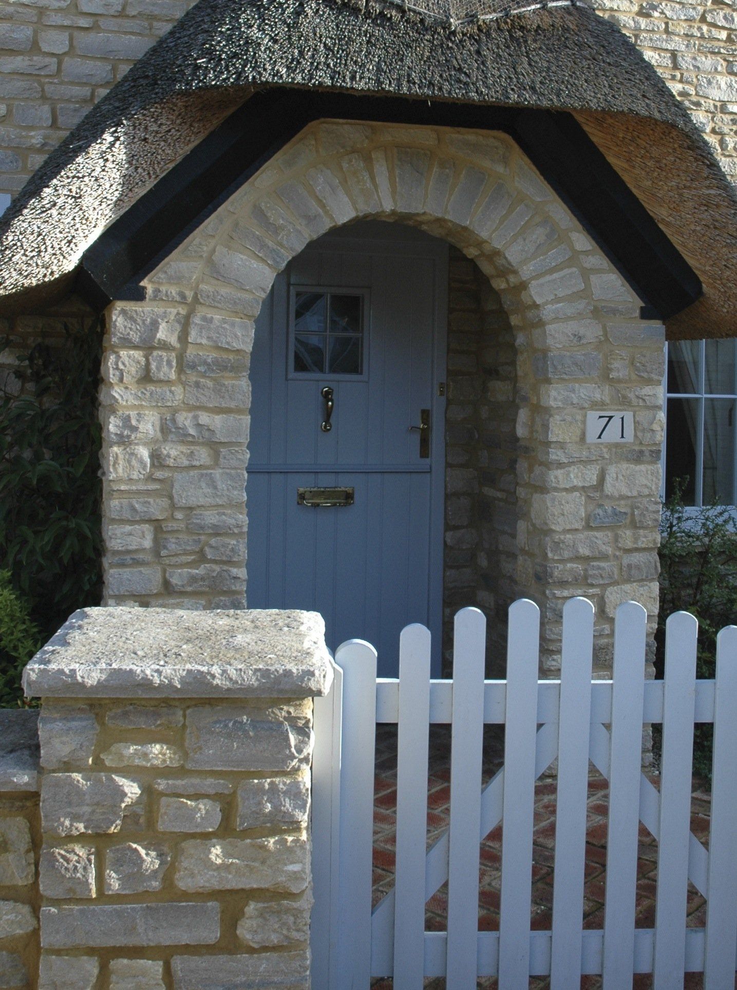 Hardwood painted stable door. Door includes Double glazed unit on top door and has brass letter plate, Handle and door knocker