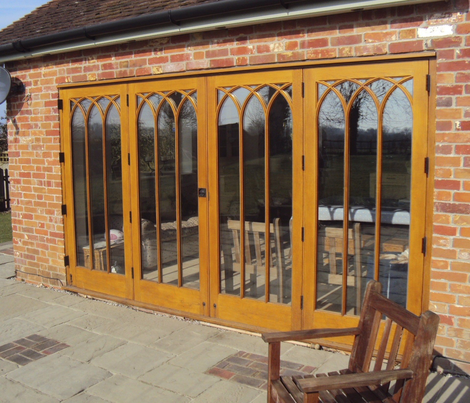 Oak Folding bi-fold doors with a stained finish