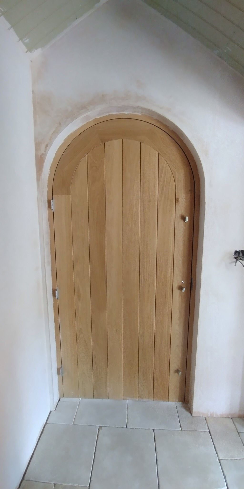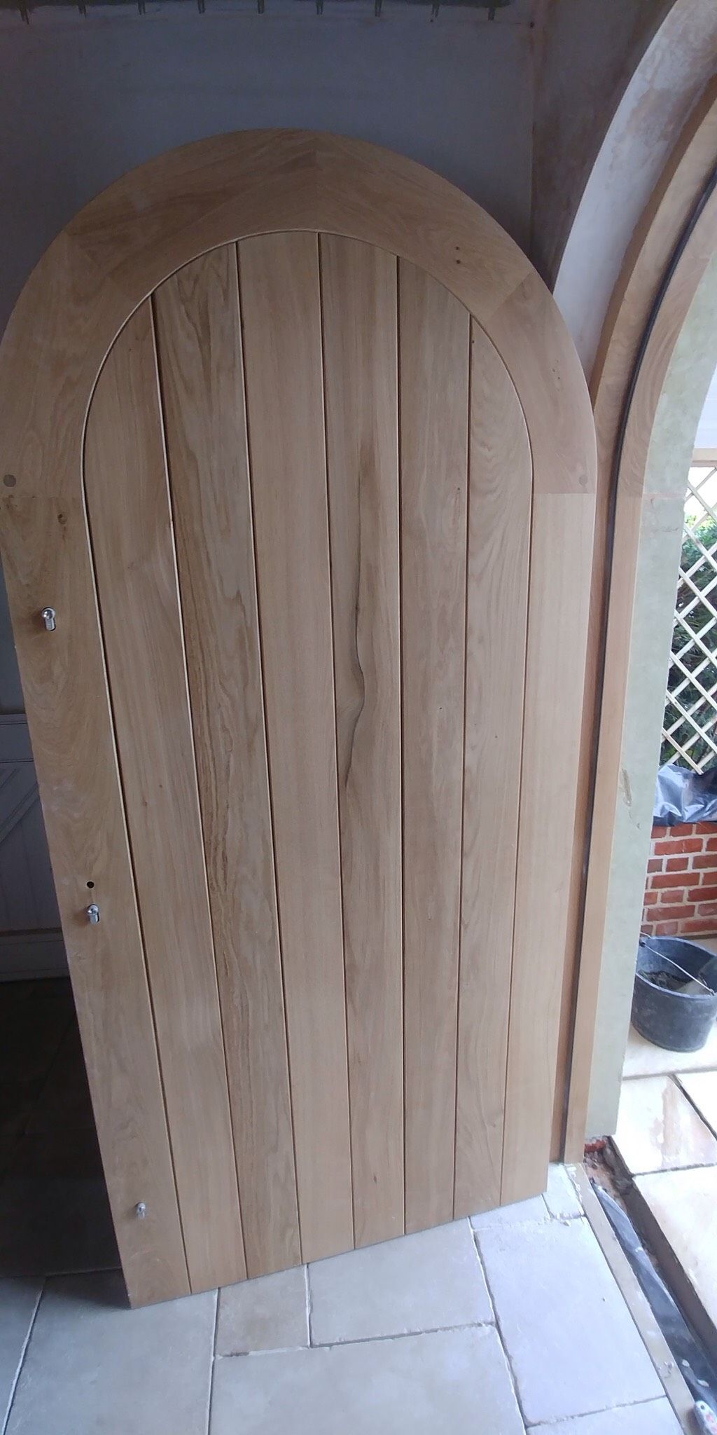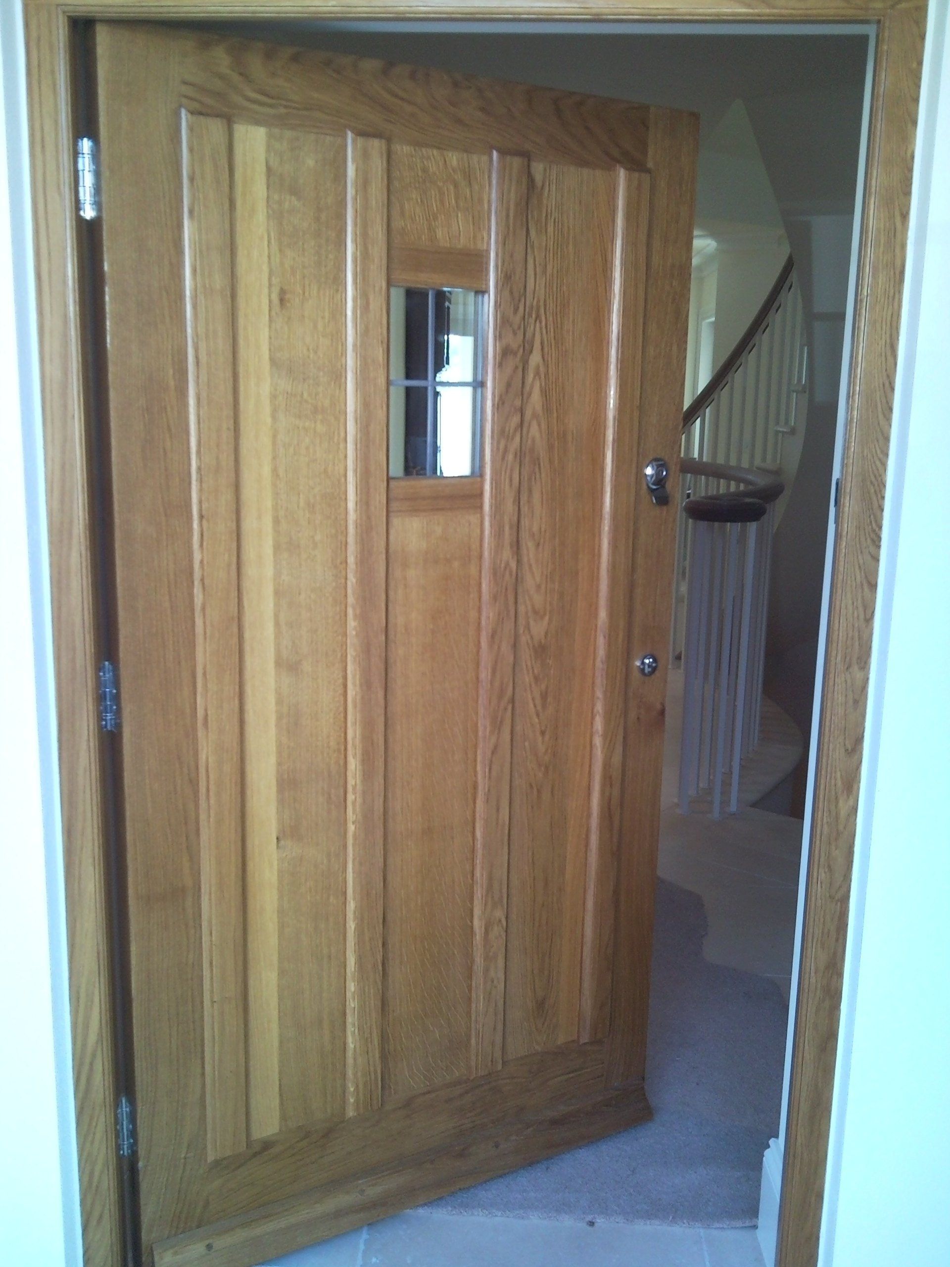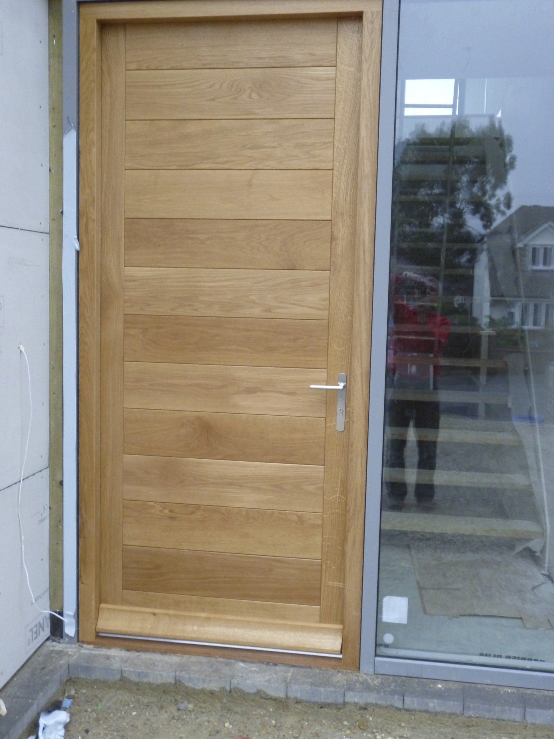 Solid oak contemporary front door and frame with solid panels