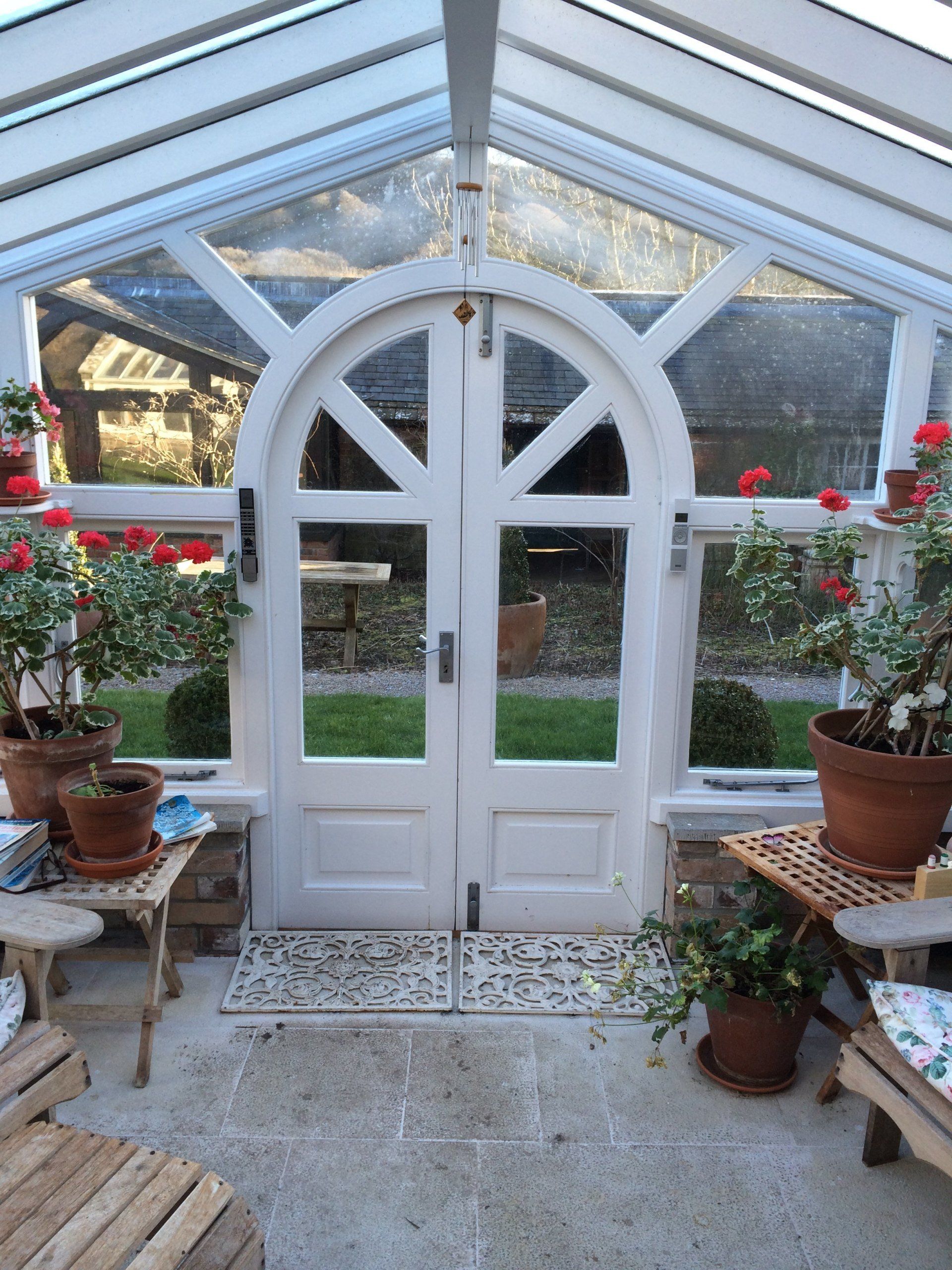 Idigbo Greenhouse front as shown in workshop with arched doors shown in raw state