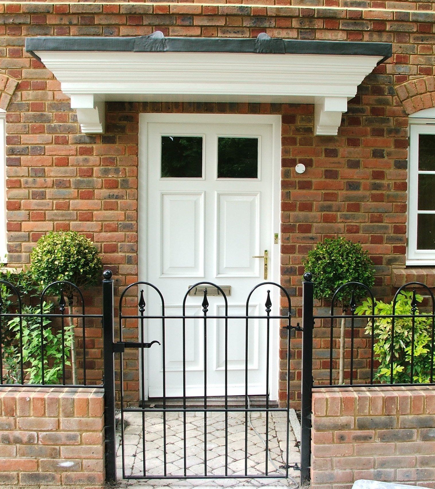 Finished House at Worgret gardens in Wareham. The image shows the sliding sash windows, Porch canopy and a front door we have manufactured for this house