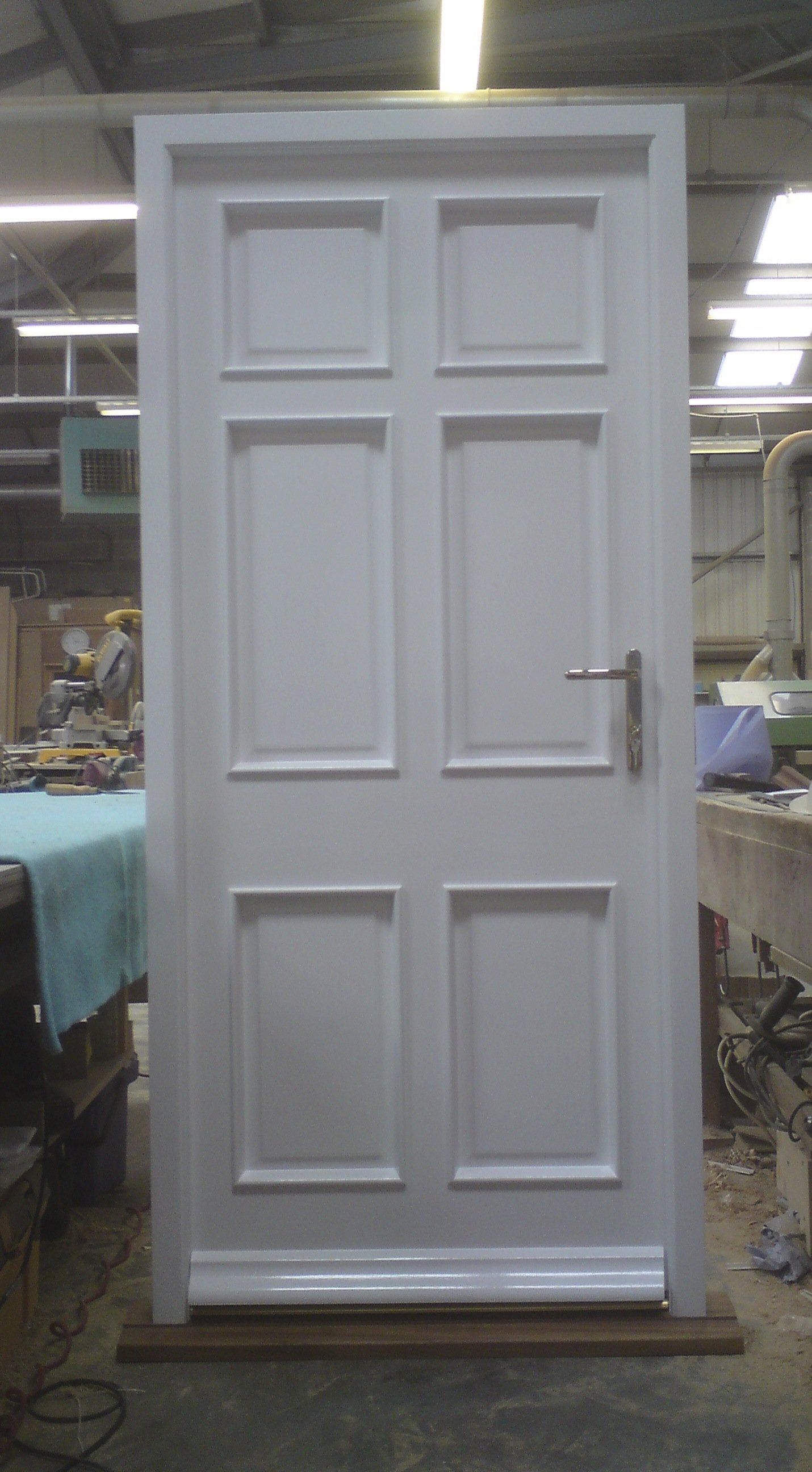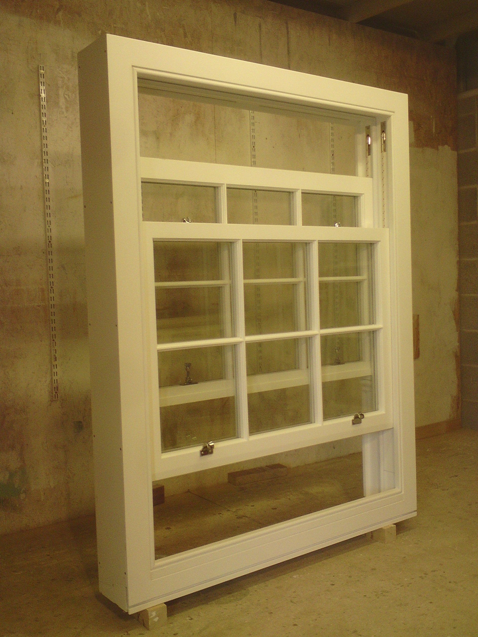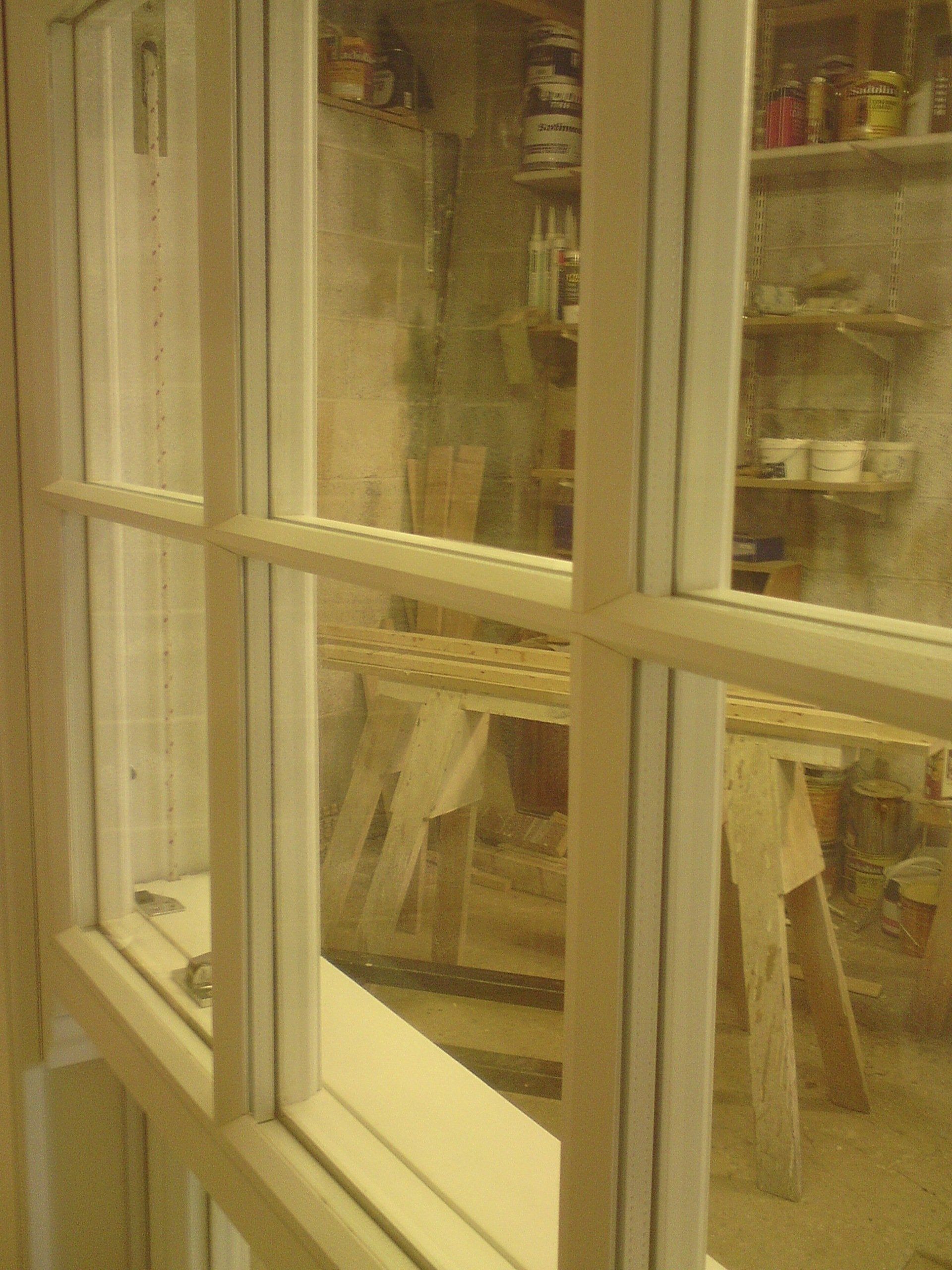 Sliding sash window with a spray painted satin finish as shown in the workshop