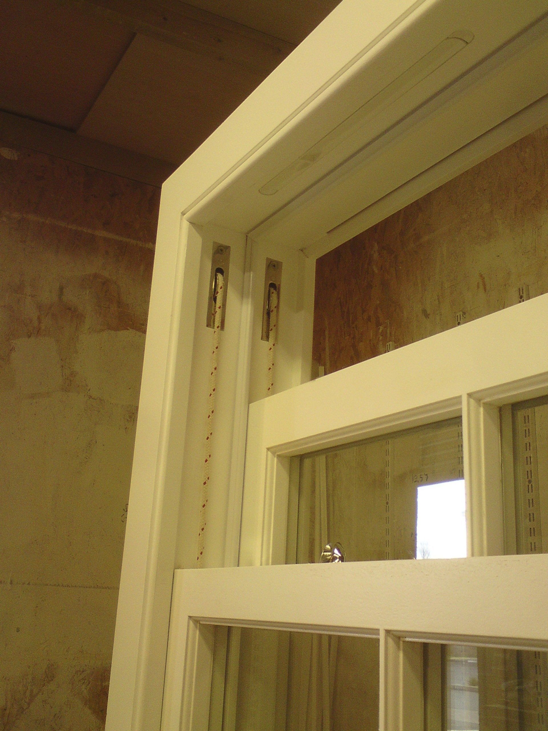 Image showing a close up of the inside of sliding sash windows produced for Worgret gardens. The windows have an ovolo mould, Polished chrome pulleys and flush fitting trickle vents incorporated into the head of the window