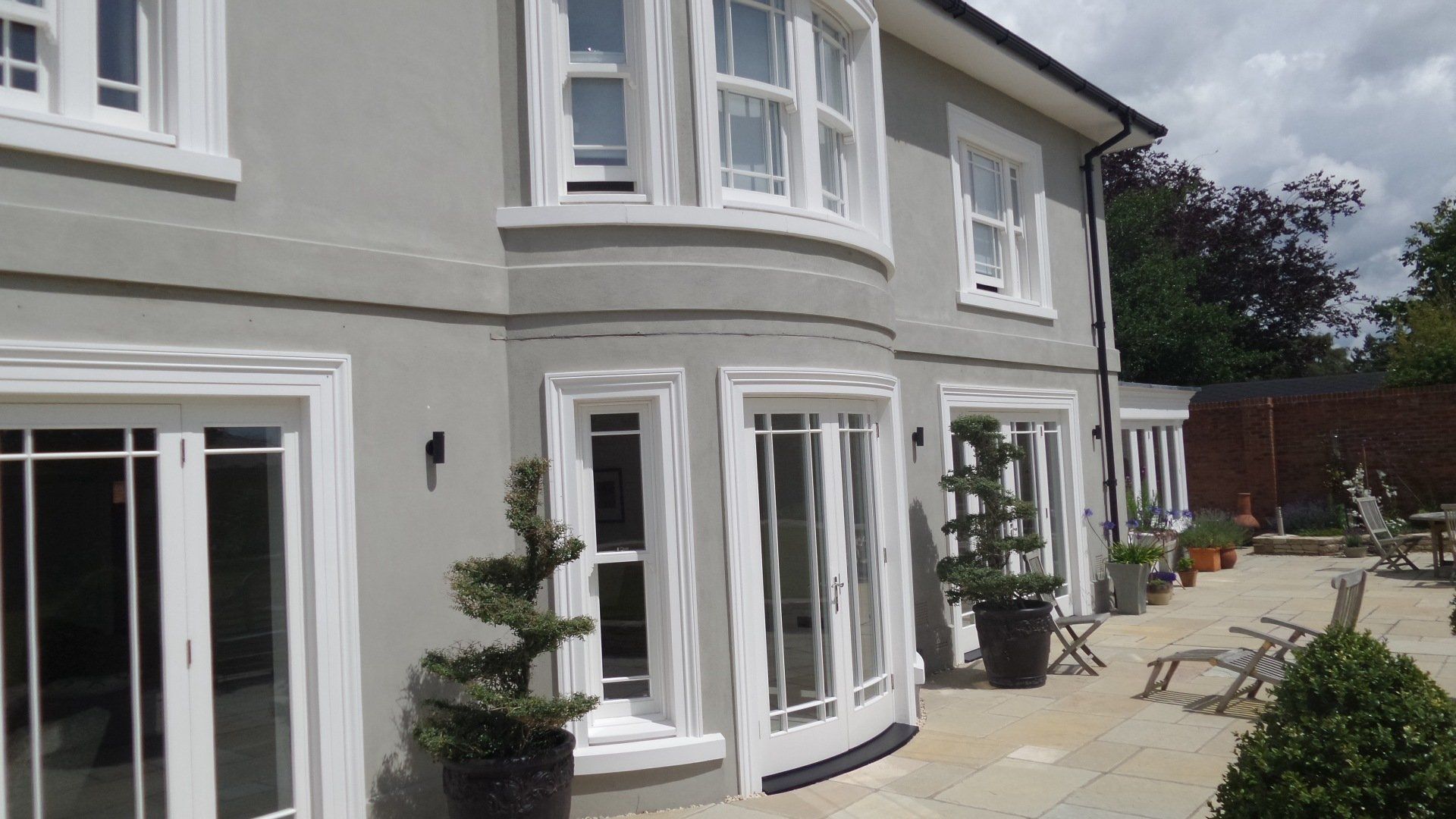 Finished House at Worgret gardens in Wareham. The image shows beautifully our sliding sash windows, Orangery and French doors we constructed for this build
